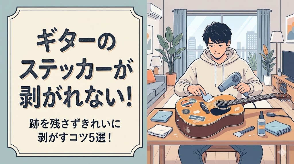 買ったばかりのギターに貼られた値札シールや、前の持ち主が貼った派手なステッカー。 いざ剥がそうとすると、ボロボロに破れたり、頑固なベタベタが残ったりして困るも... -