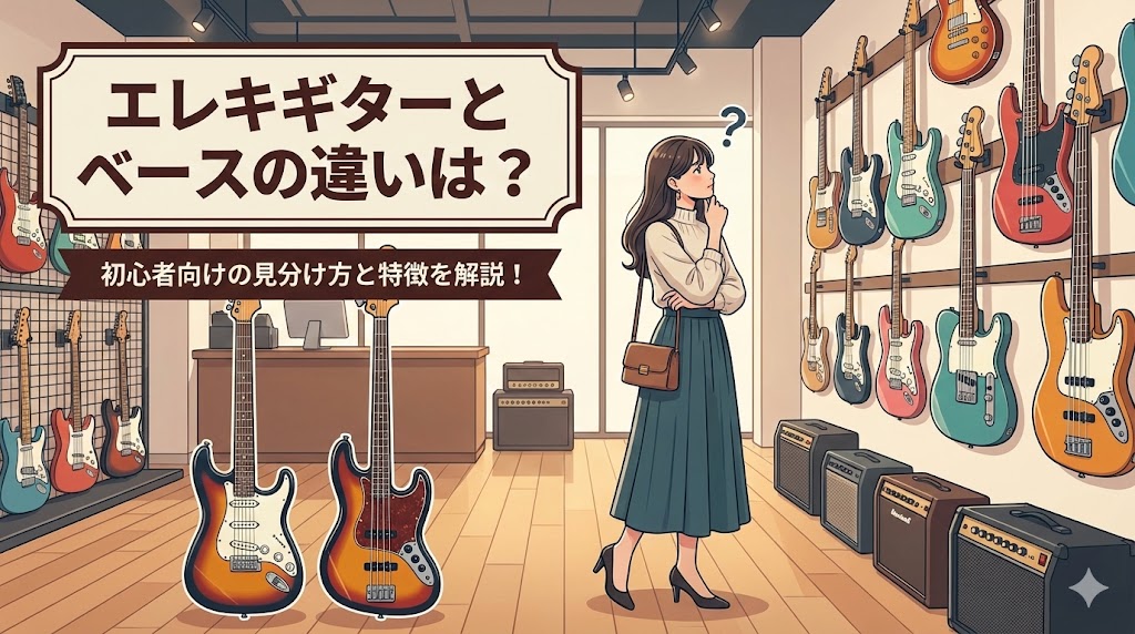 楽器屋さんに行って、壁一面に並んだ楽器を眺めると「どれも同じように見える」と戸惑うかもしれません。 特にエレキギターとベースは形がよく似ているため、音楽に詳し... -